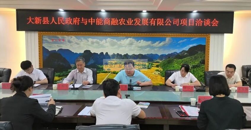 8日下午,中能商融一行来到大新县人民政府就特色种养循环产业发展项目与所在地人民政府负责同志进行了会务洽谈。会议由大新县副县长甘创新主持,县政府相关委办局负责同志参加。