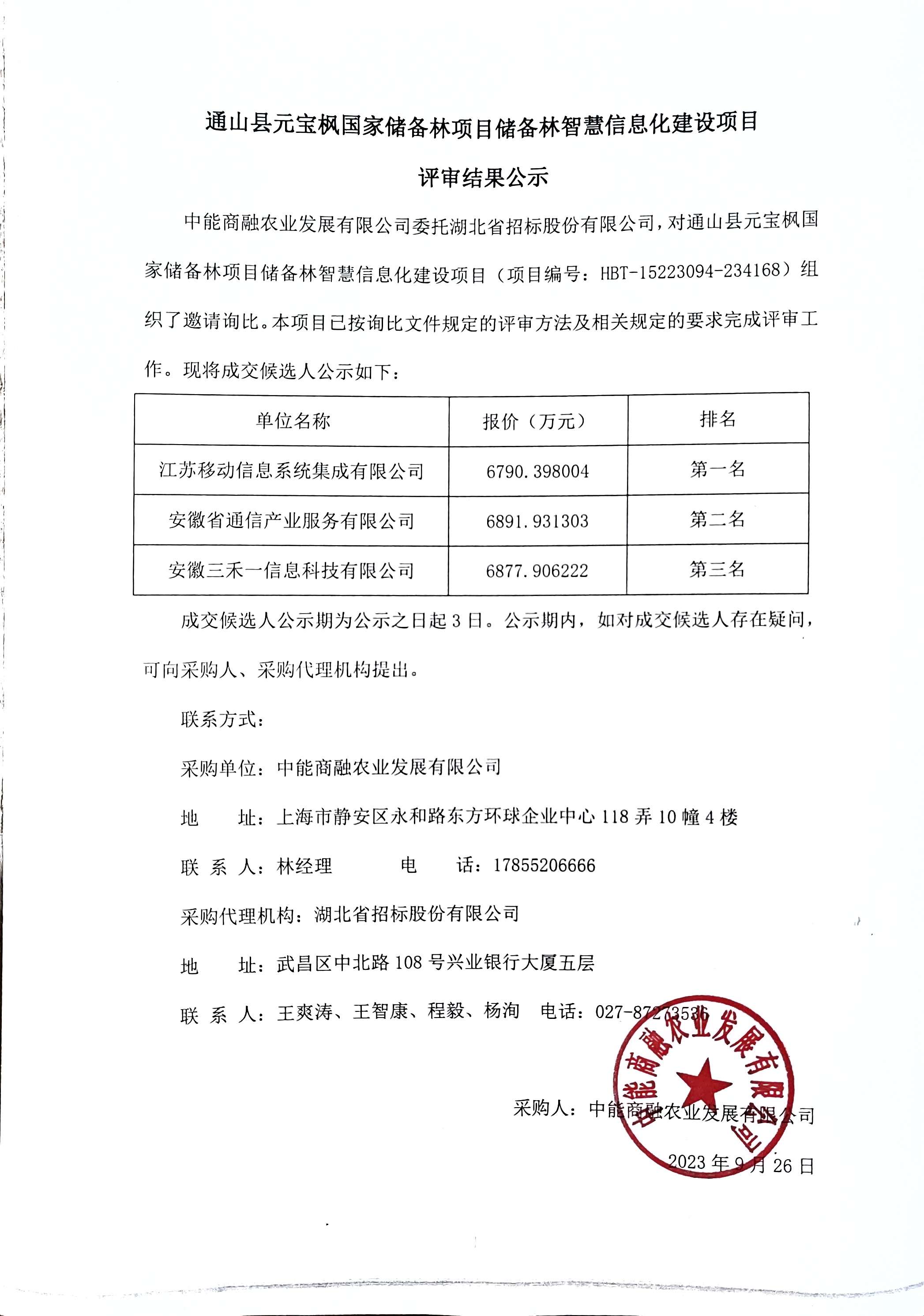 通山县元宝枫国家储备林项目储备林智慧信息化建设项目评审结果公示