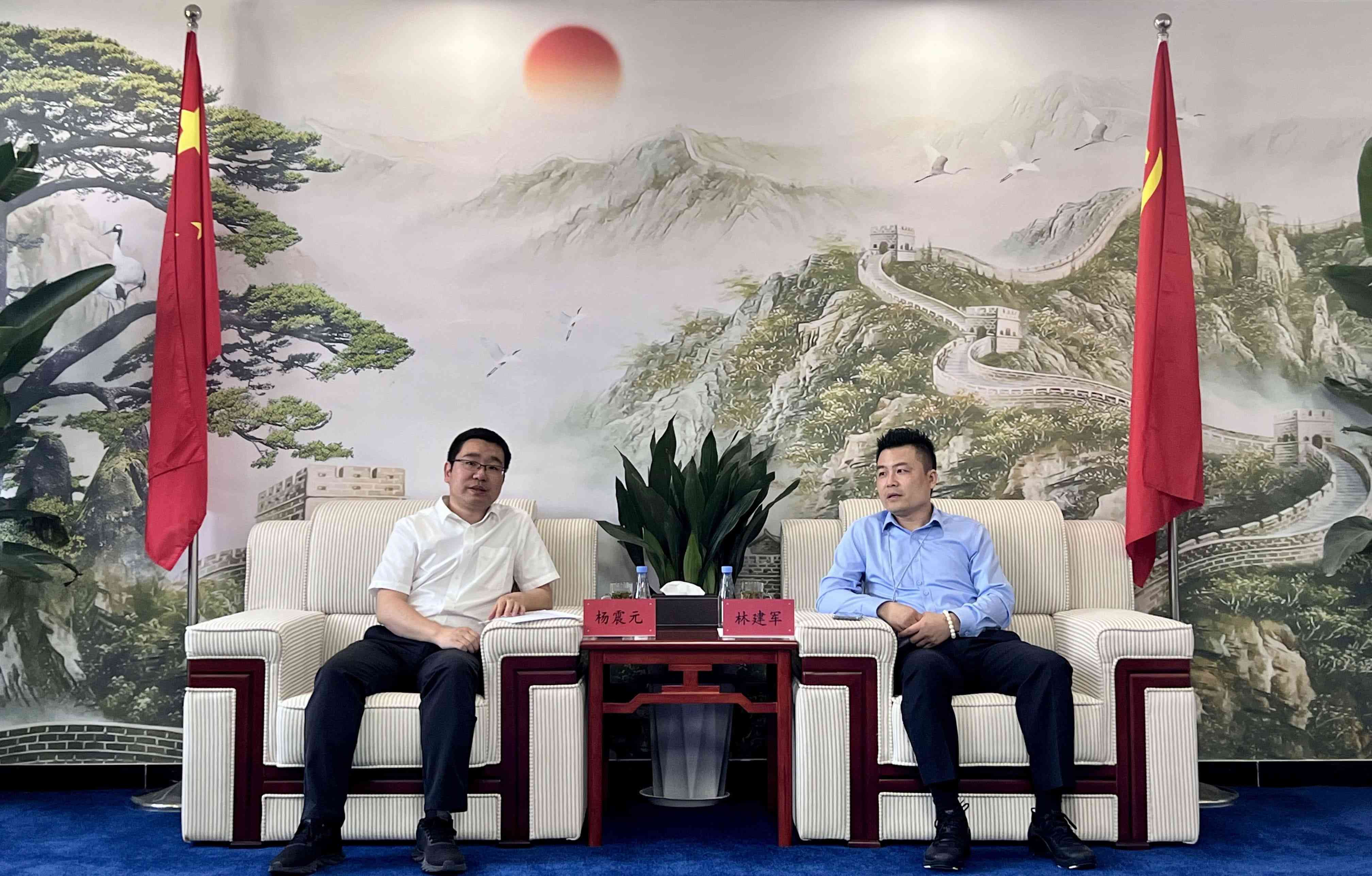 2024年6月3日,望江县政府党组成员、副县⻓杨震元一行来中能商融农业发展有限公司(以下称中能商融)安徽办公区访问交流,中能商融总⼯程师、中能商融(安徽)农林科技有限公司总经理林建军等热情接待,双方在安徽公司进行座谈。