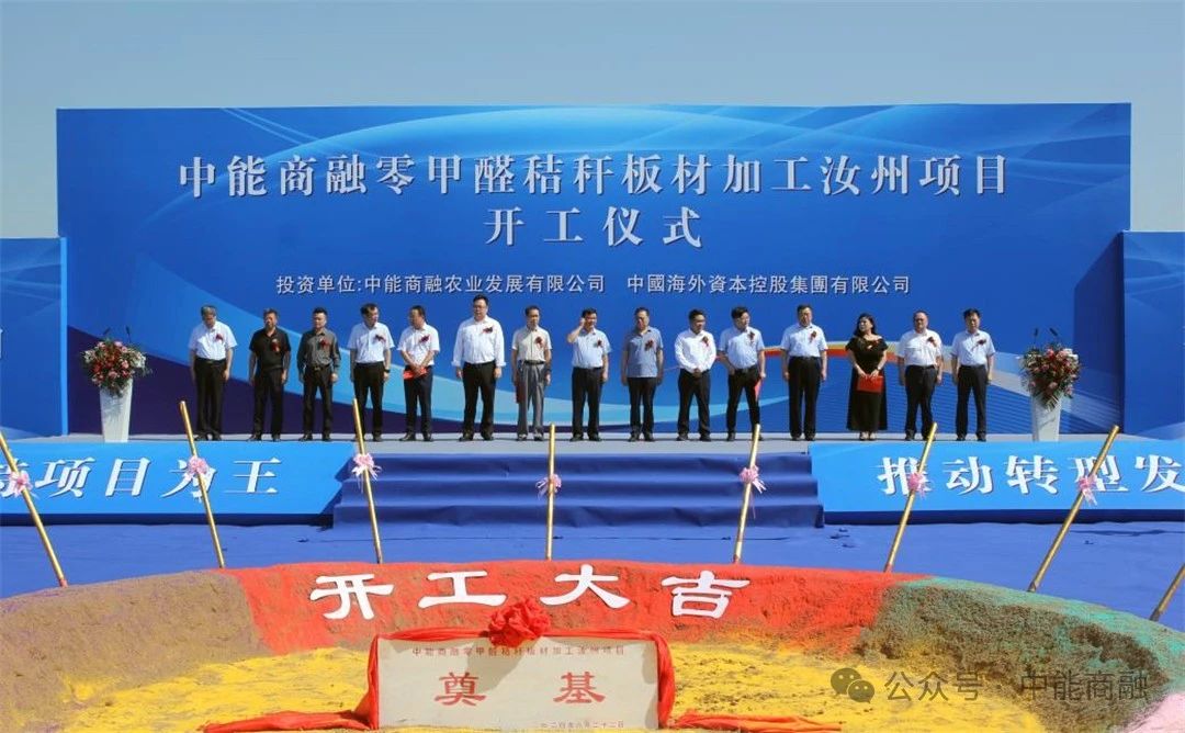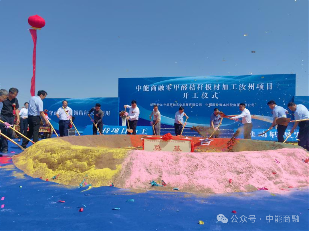 2024年8月22日,中能商融零甲醛秸秆板材加工汝州项目开工仪式圆满举行。汝州市委副书记、市长刘国朝,汝州市政府副市长张飞,中能商融农业发展有限公司(下称中能商融)董事长李月尧,中国海外资本控股集团有限公司总裁杨秀峰,中能商融副总裁、中能商融(安徽)生态科技有限公司总经理盛超,中能商融副总裁、中能商融(安徽)农林科技有限公司总经理林建军,上海康拜环保设备有限公司董事长、首席科学家王步宁等领导、嘉宾出席开工仪式,汝州市委副书记杨涵主持开工仪式。